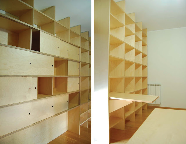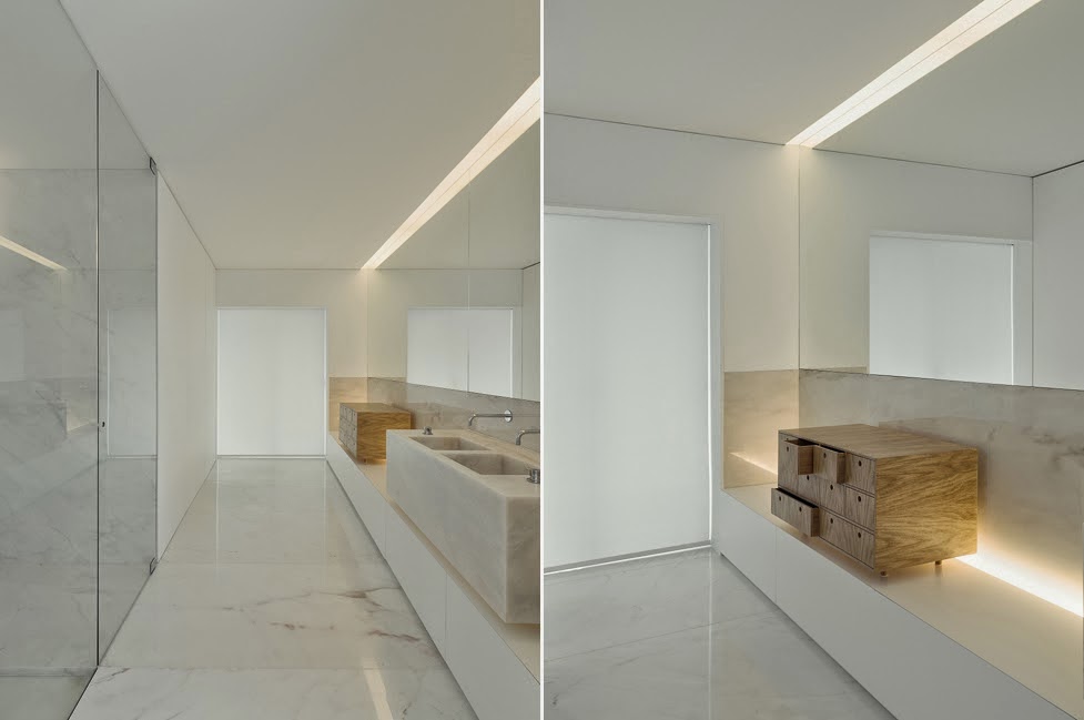Na releitura do espaço, aceitaram-se as aberturas da pré-existência, mas reduziu-se toda a circulação a um eixo central, transversal ao apartamento, que leva o caminho da luz Sul à parte Norte recriando esta casa, que dantes se apresentava "labiríntica", num espaço unitário. Essa unidade foi reforçada através de painéis, que fechados encerram e individualizam cada área, e abertos diluem-nas num espaço único.