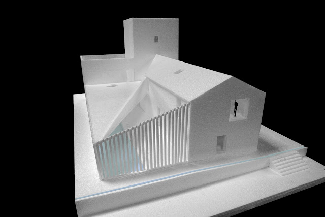 Maqueta da capela, adega e casa do caseiro (fase de concurso), fotografias de Luisa Bebiano