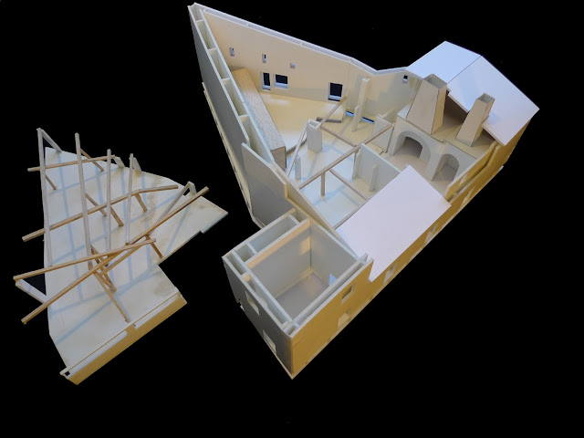 Maqueta do celeiro reconvertido em quartos e SPA (fase de concurso), fotografia de Luisa Bebiano