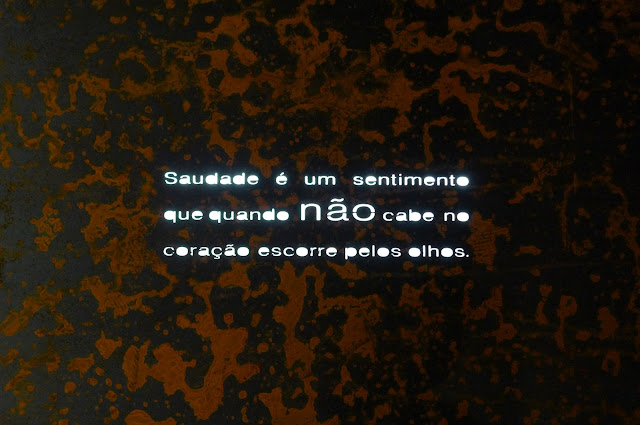 No corredor, frases de poetas relacionam o tema, unindo os dois ambientes da exposição.