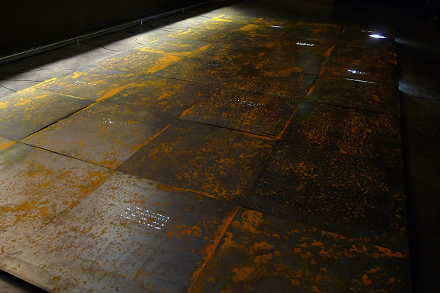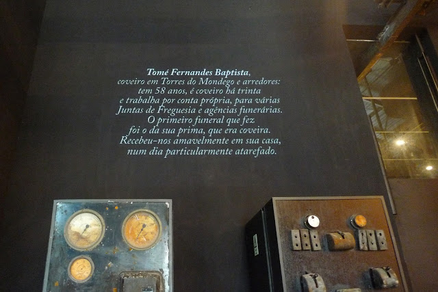 Podemos definir o corpo da exposição em dois espaços. No primeiro, o visitante e confrontado com um amplo estrado de metal, material frio e sepulcral, onde se inscrevem frases que registam escritos nas lapides de alguns cemitérios onde decorreram as recolhas. O visitante e levado a passear sobre este estrado de descoberta solene. De cinco caixas dispostas ao longo deste percurso, ecoam algumas frases soltas proferidas pelos coveiros, introduzindo os cinco temas centrais abordados nas entrevistas, convidando-o a descobrir uma nova dimensão desta nobre profissão e, simultaneamente, direccionando um pensamento mais profundo sobre uma actividade que provem da nossa própria finitude.