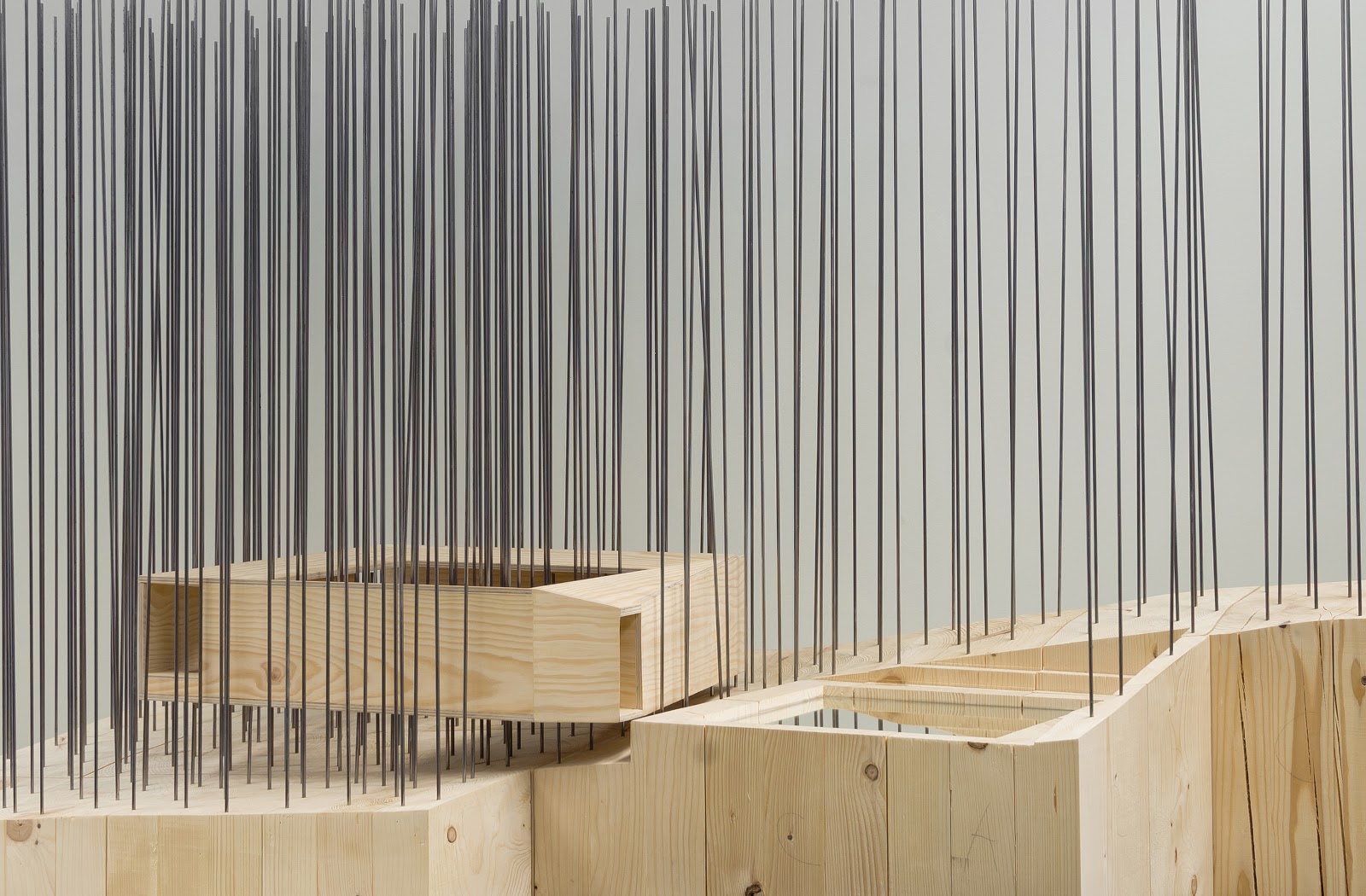 This sound installation, built with wood on a river, can be interpreted as a stationary space of architecture, a sculpture where the visitor drawn into it listens to music specially composed for the moment and its surrounding space.